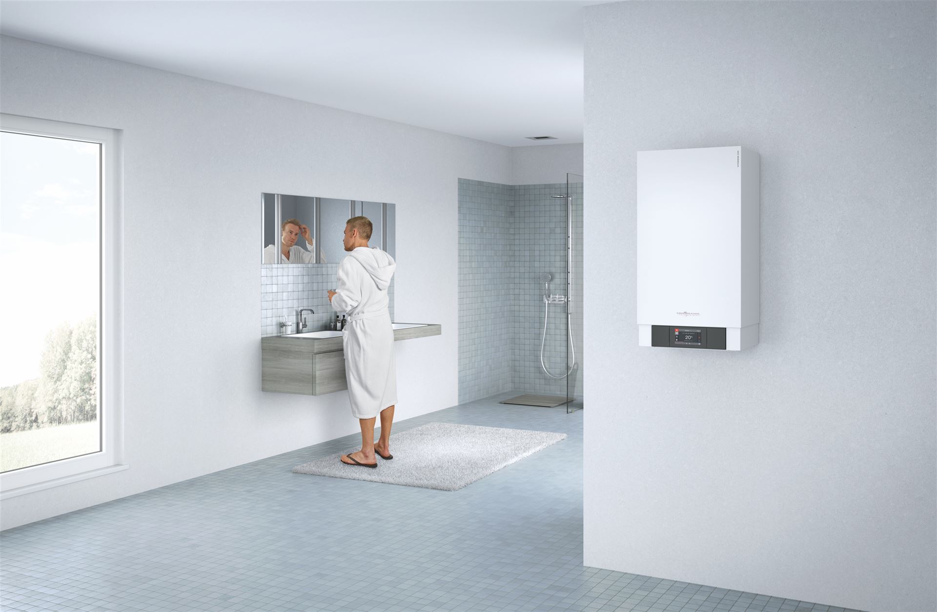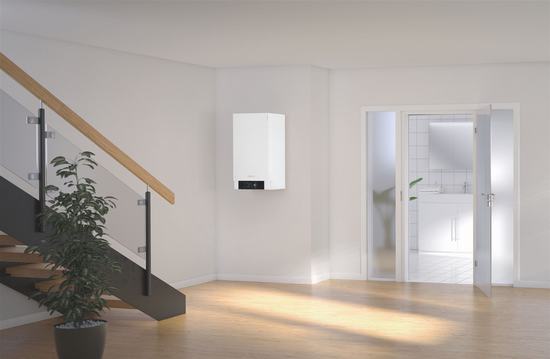 Vitodens 200-W ist das ideale Gas-Brennwert-Wandgerät für die Eigentumswohnung oder das Ein- und Mehrfamilienwohnhaus. Es lässt sich problemlos in einer Nische im Badezimmer oder in einem Küchenschrank montieren.