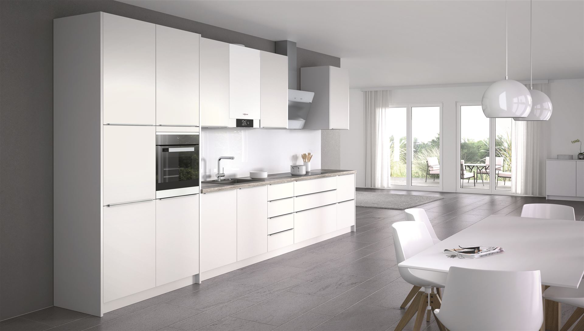 Mit seiner Leistung bis 35 kW ist das Gas-Brennwert-Kompaktgerät Vitodens 222-W ideal für die Eigentumswohnung oder das Einfamilienwohnhaus. Es lässt sich problemlos an der Wand in einer Nische im Bad, in der Küche oder auch im Hauswirtschaftsraum montieren.