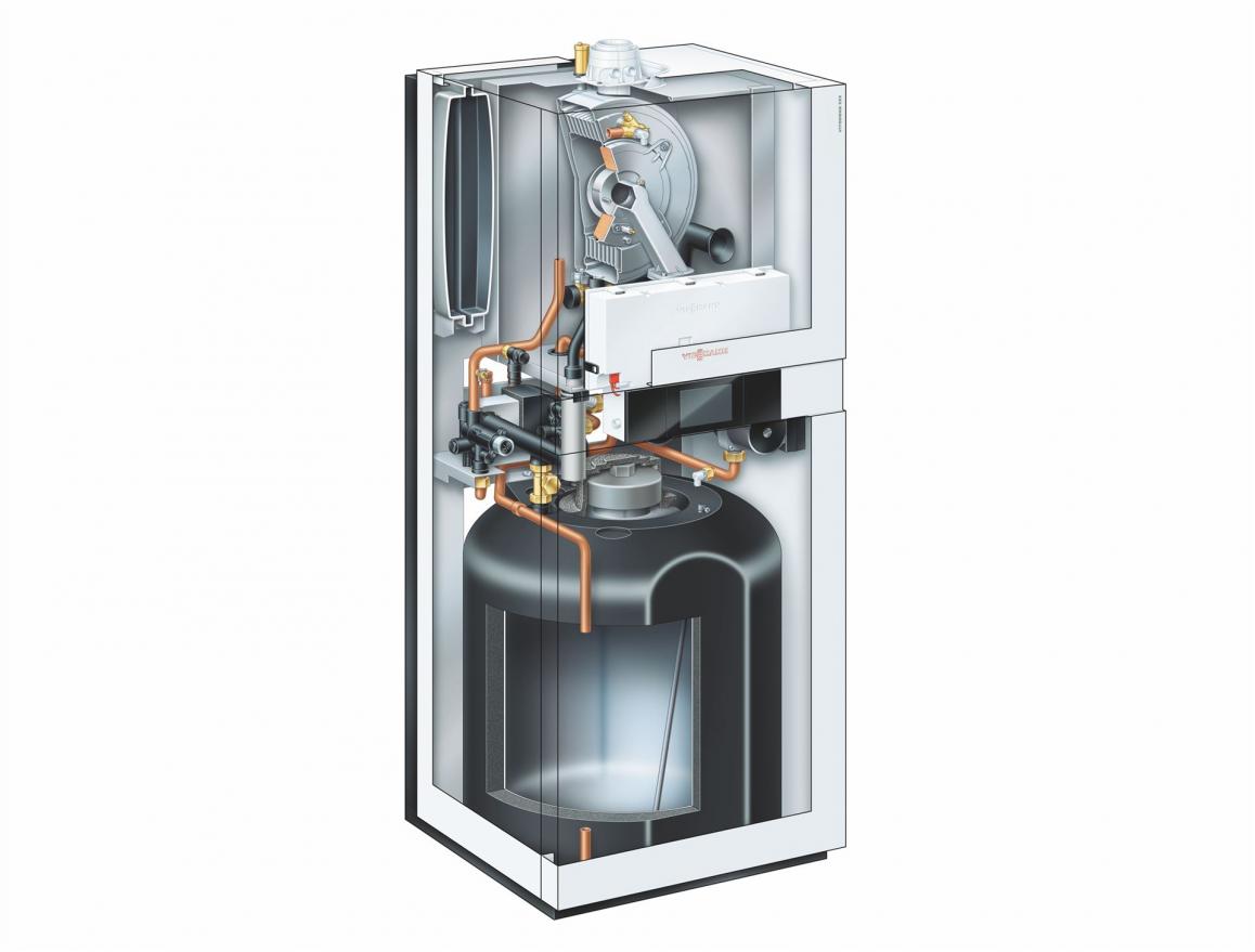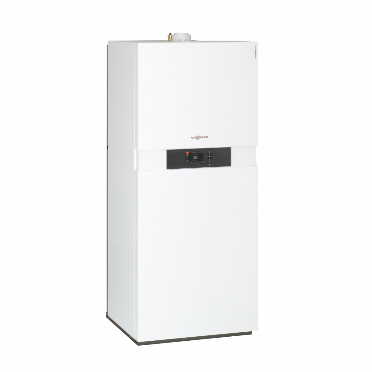 Der Vitodens 333-F kombiniert die Vorteile des Vitodens 300-W mit dem hohen Warmwasserkomfort eines Warmwasserspeichers in einem kompakten Standgerät.