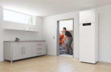 Das Vitodens 343-F Gas-Brennwert-Kompaktgerät ist für den Neubau und zur Modernisierung im Einfamilienhaus konzipiert. Bereits ab Werk ist der Vitodens 343-F für den direkten Anschluss einer Solaranlage vorbereitet. Das wandstehende Gerät bietet einen hohen Trinkwasserkomfort: Der bivalente Edelstahl-Warmwasserspeicher hat ein Volumen von 220 Litern. Gegenüber seinem Vorgänger ist das kompakte Gerät zur einfacheren Einbringung teilbar. Zudem wurde das Gewicht deutlich reduziert.