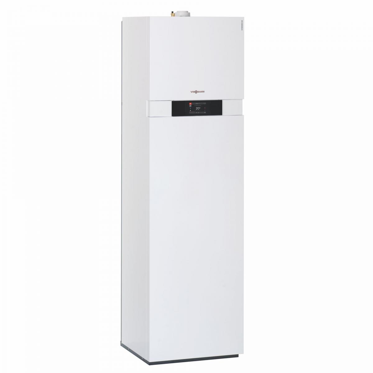 Das anschlussfertige Kompaktgerät bietet energiesparende Brennwerttechnik, leistungsfähige Trinkwassererwärmung durch ein Speicherladesystem und anschlussfertige Solarvorbereitung in einem Gehäuse.