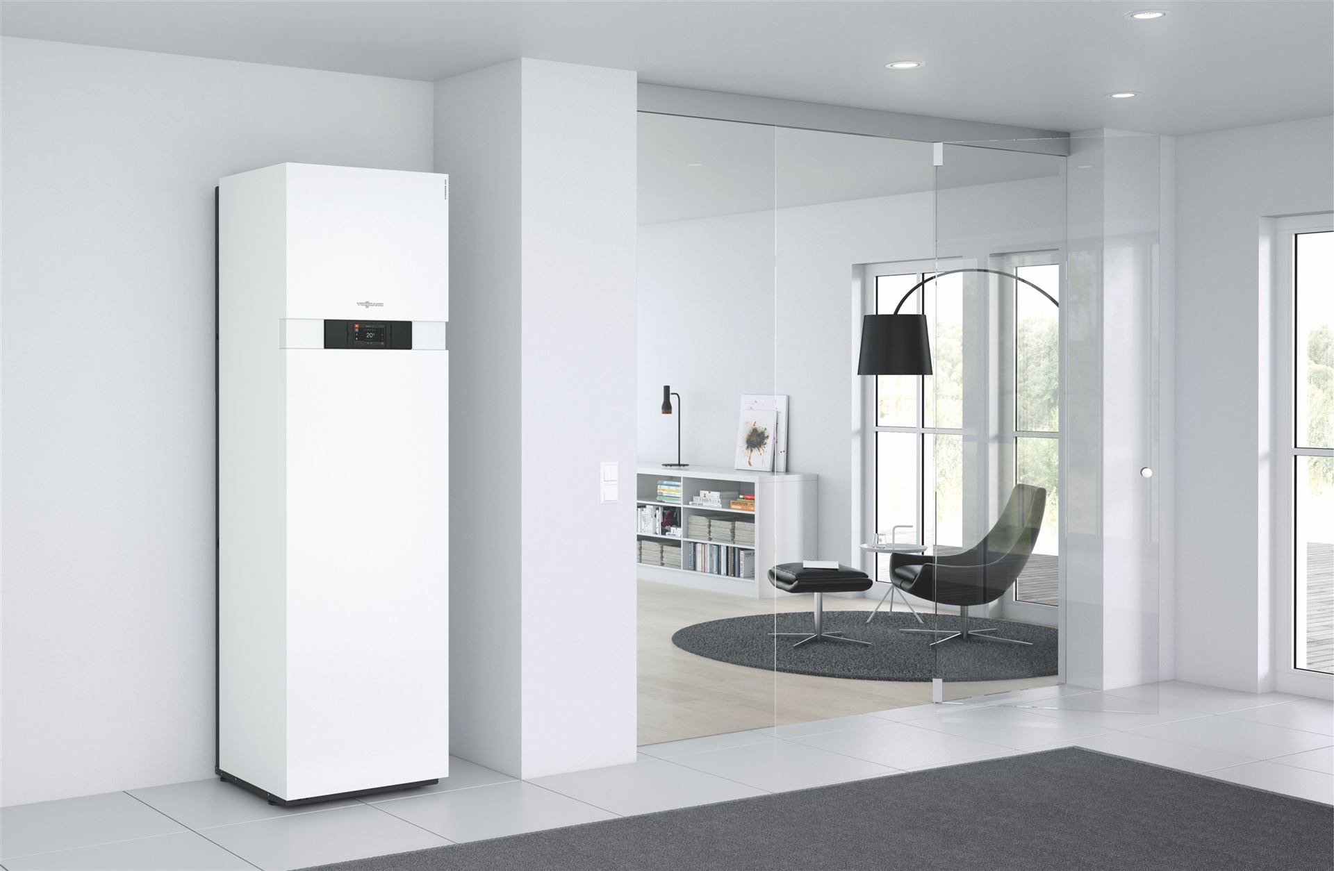 Das Vitodens 343-F Gas-Brennwert-Kompaktgerät ist für den Neubau und zur Modernisierung im Einfamilienhaus konzipiert. Bereits ab Werk ist der Vitodens 343-F für den direkten Anschluss einer Solaranlage vorbereitet. Das wandstehende Gerät bietet einen hohen Trinkwasserkomfort: Der bivalente Edelstahl-Warmwasserspeicher hat ein Volumen von 220 Litern. Gegenüber seinem Vorgänger ist das kompakte Gerät zur einfacheren Einbringung teilbar. Zudem wurde das Gewicht deutlich reduziert.